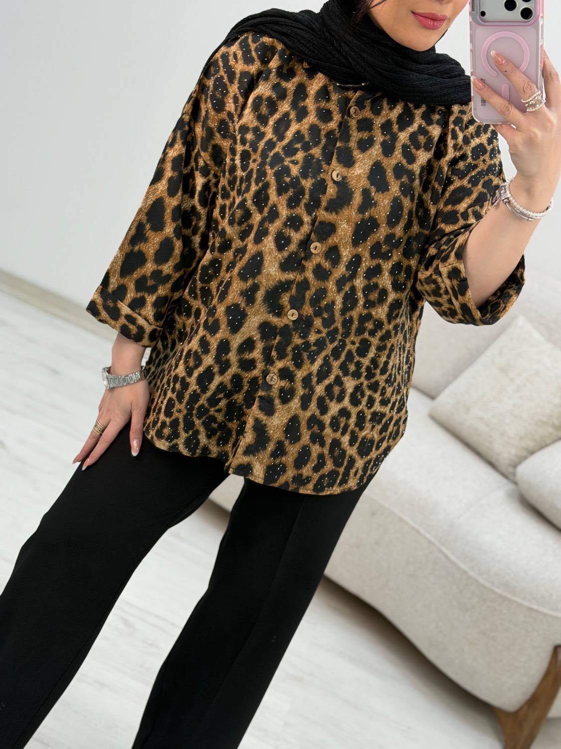 شومیز پلنگی نگین دار