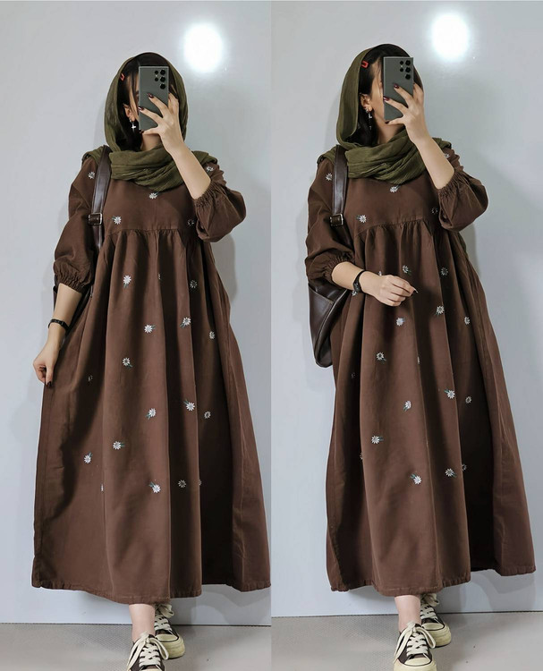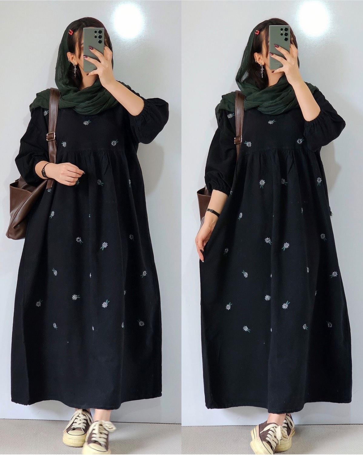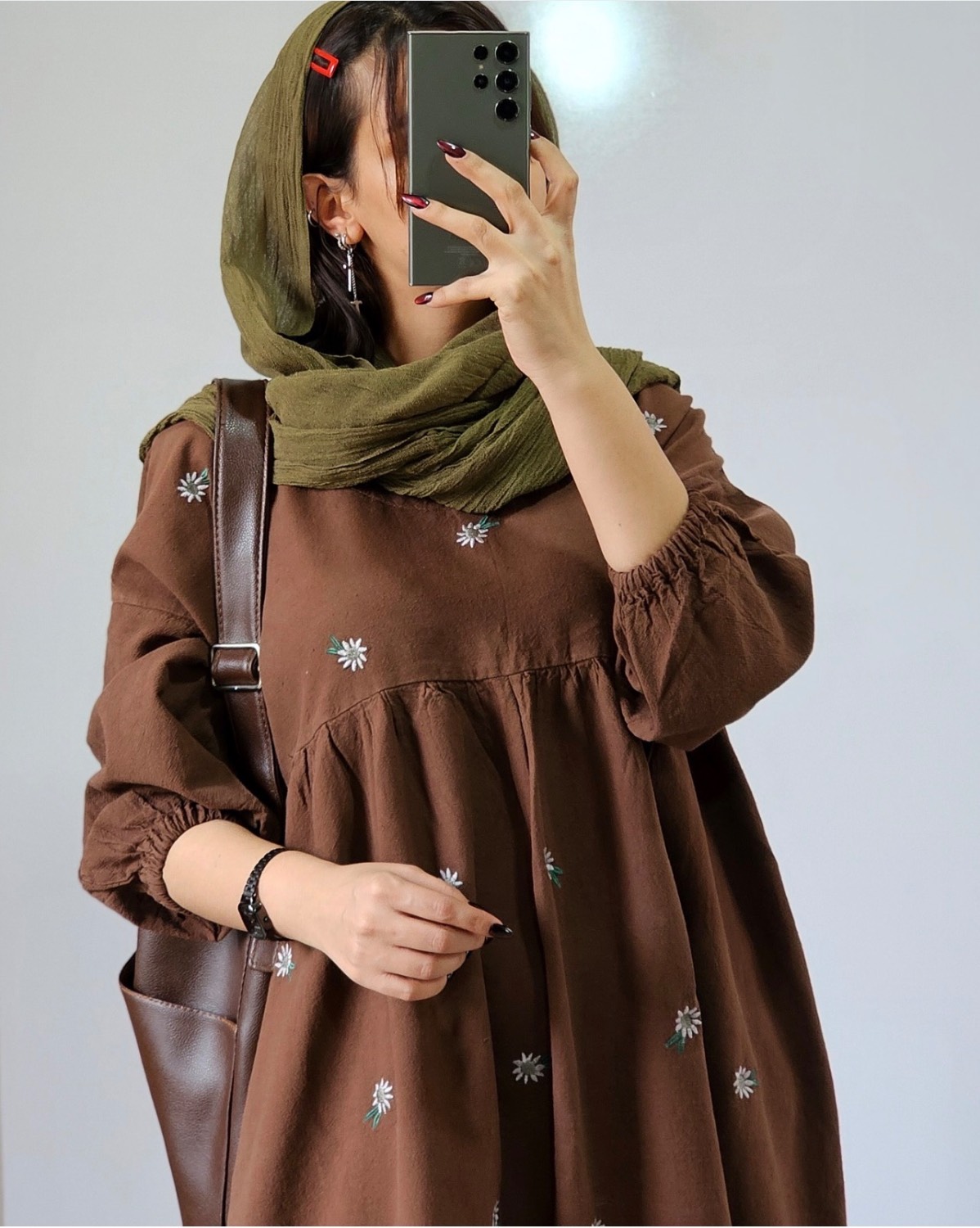 ❤️قد کار130 ❤️دورسینه 127 ❤️قد استین70 ❤️فری38تا48-50 ❤️تماما گلدوزی شده حلقه استین هماننده ژورنال برش خورده بسیار پر چین،تنخور عالی