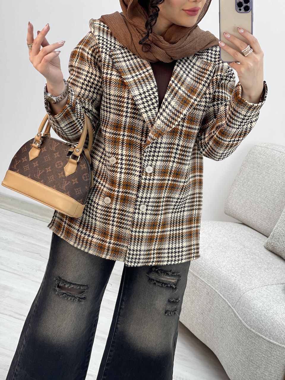 کت چهارخونه یقه انگلیسی سارینا