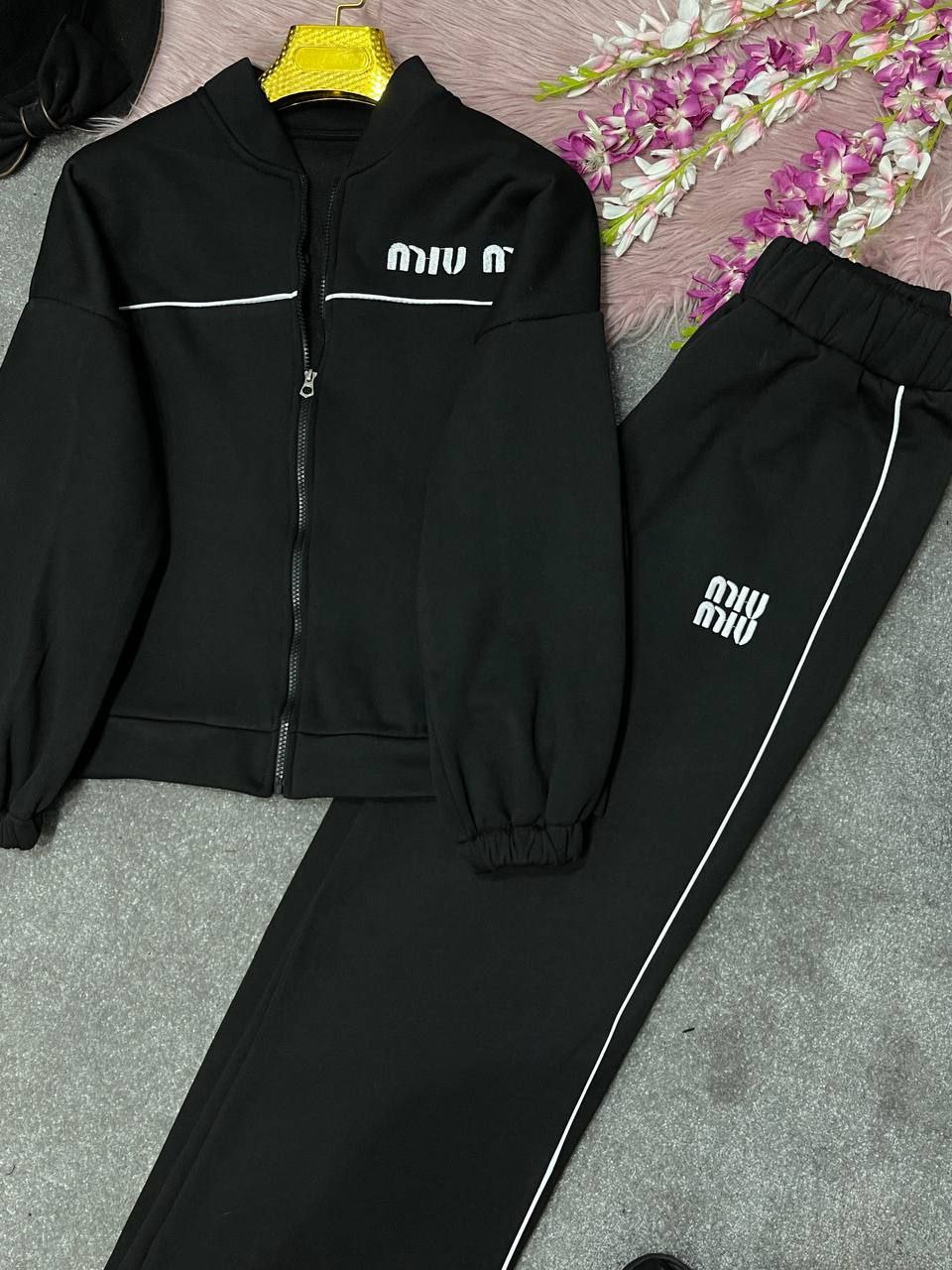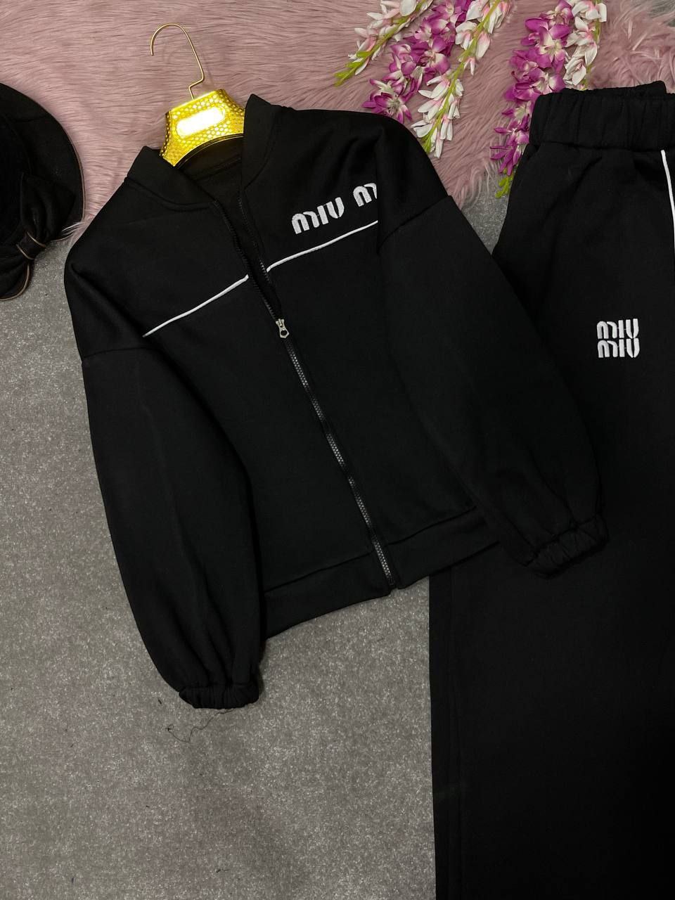 🛍نام : ست اسپرت miu miu🍂 جنس : دورس👌🍂 🌈رنگ بندی : مشکی✔️ 🧶سایز ها : فری۳۸تا۴۶✔️ ✅️قدسویشرت حدودا۶۰ قداستین ازیقه ۶۸ دوربازو۴۰ دورسینه ۱۲۸ ✅️قدشلوار۱۰۵ دمپا۶۰دورران ۶۴